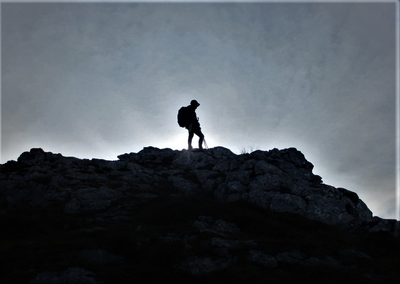 Llegamos a la cumbre del Jascal, jalonada por grandes bloques de piedra caliza, con muy buena adherencia para las botas. Unas pequeñas trepadas, y estamos en la cumbre.